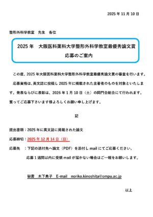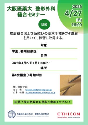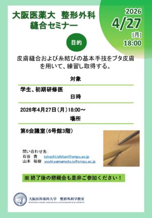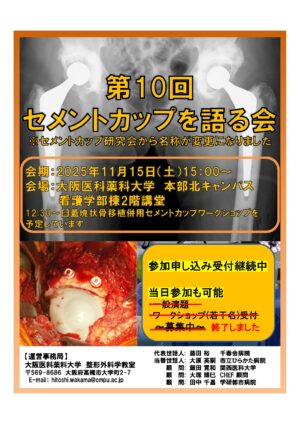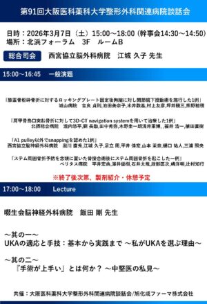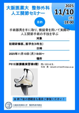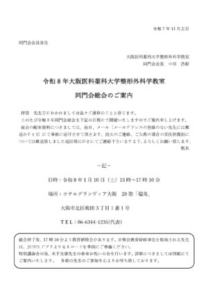ハード面も2027年に100周年を迎える本学は京都と大阪の中間と抜群の立地に新病院を建設中であり、最先端の医療環境のもと、良い経験ができると確信しています。明るい雰囲気の中でみなさんがきっと成長できる大阪医科薬科大学で整形外科専門医の第一歩を踏み出しましょう。