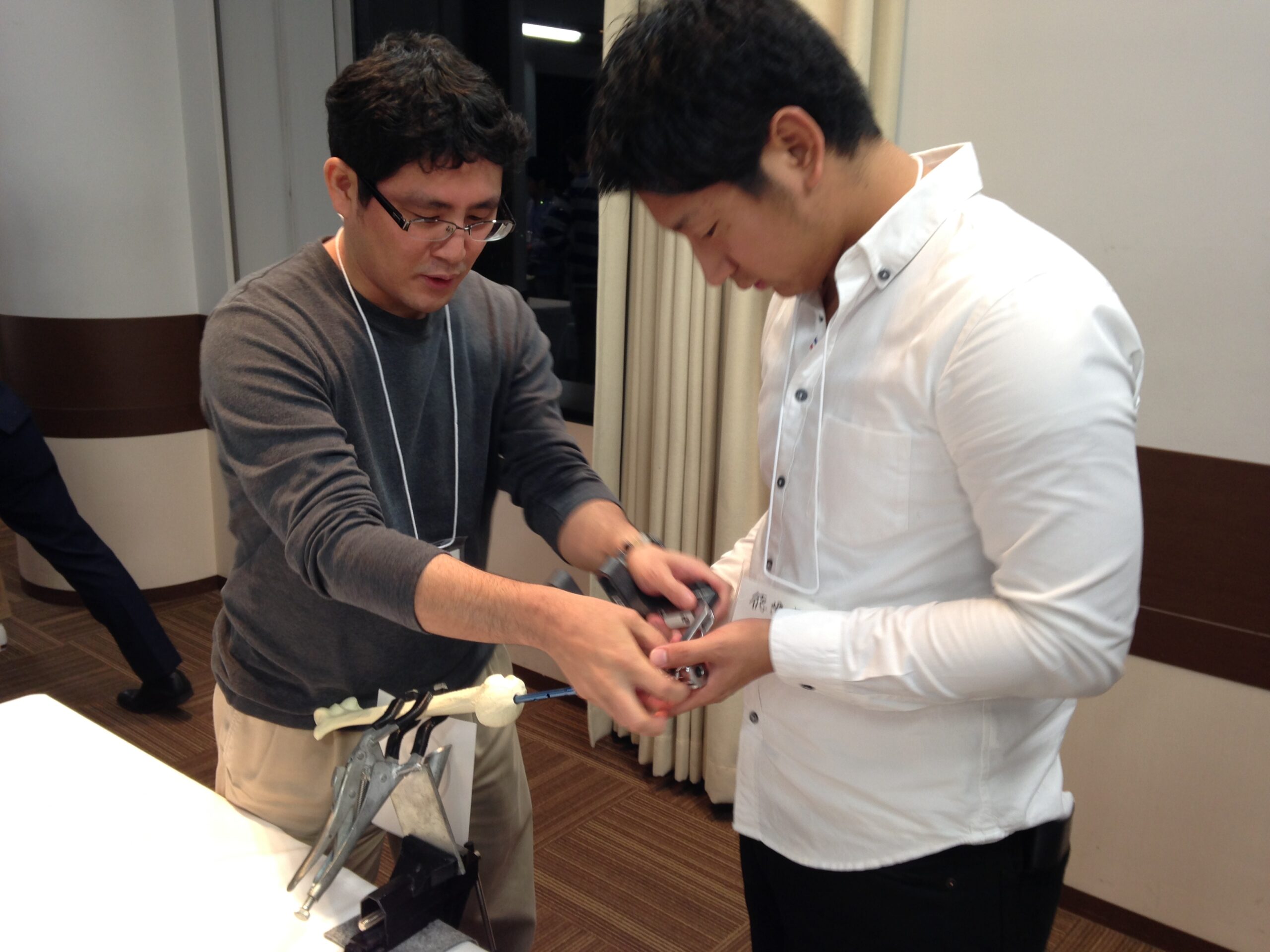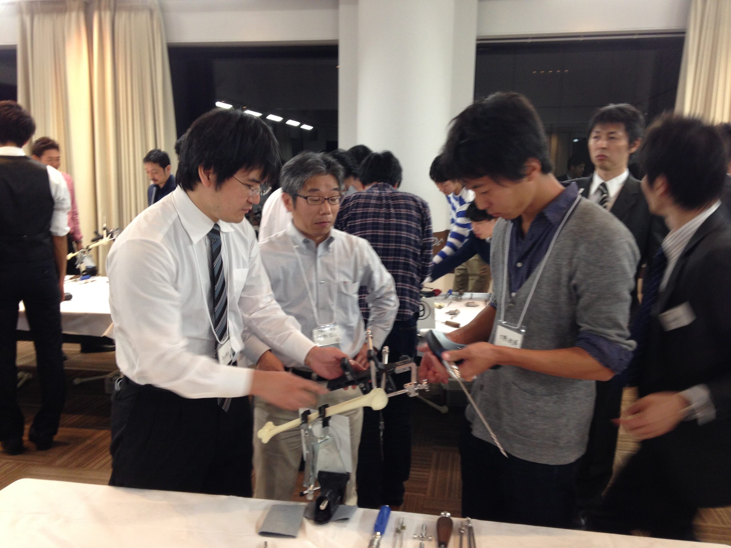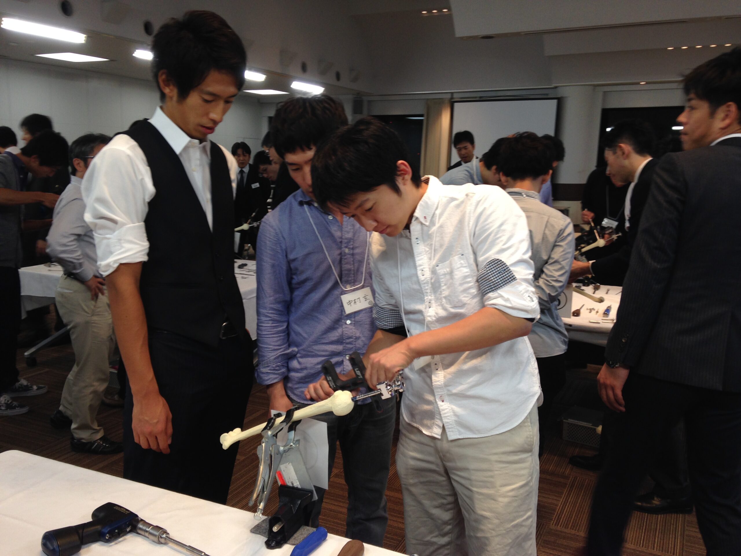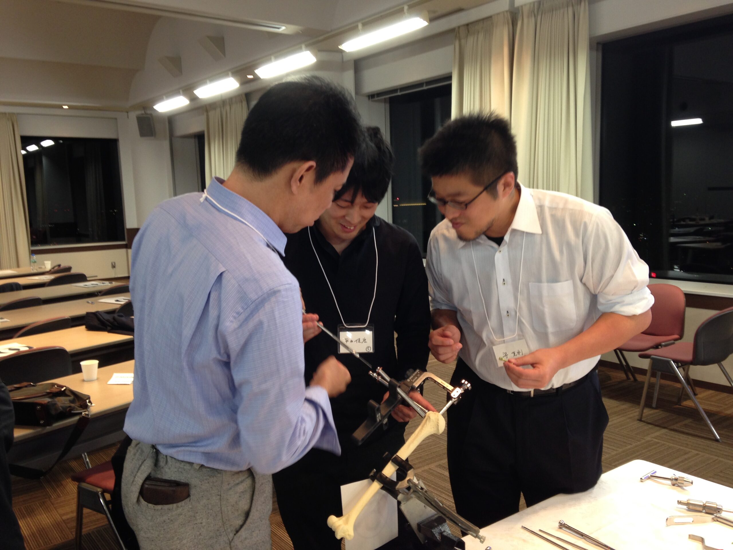 参加した医学生や研修医は、初めて手にする整形外科器械にはじめは四苦八苦していましたが、無事に髄内固定を完遂させ喜んでいました。レジデントも次はぜひ実際の患者で使ってみたいと意気込んでいました。