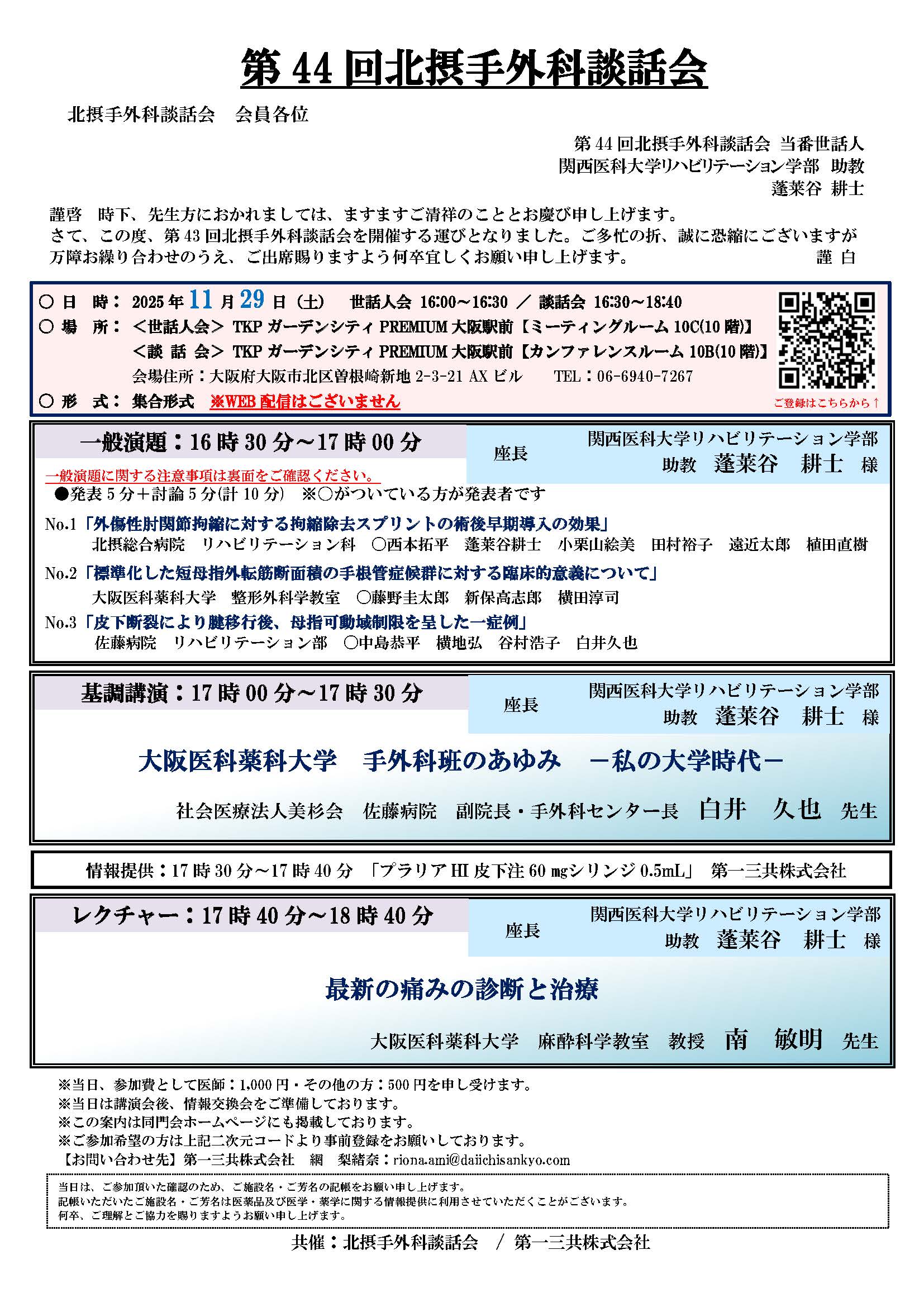 『第 90 回 大阪医科薬科大学整形外科関連病院談話会』 幹事会のご案内