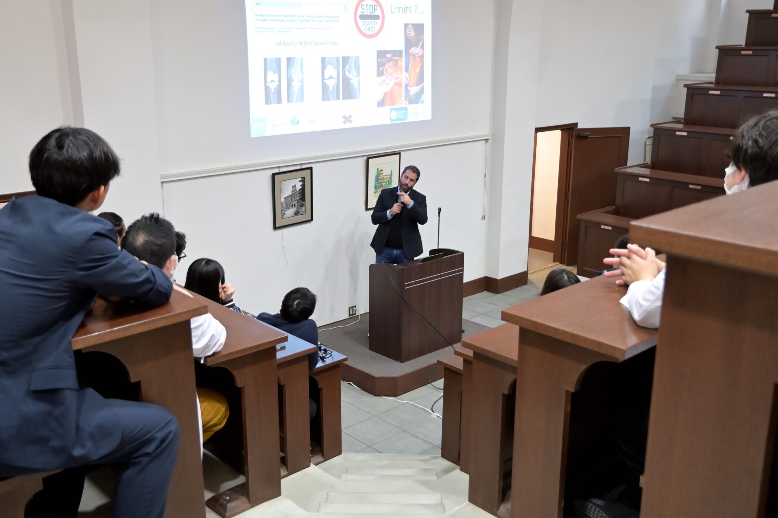 2024年10月30日、今回はフランスLyon大学病院から人工膝関節手術などで有名なSebastien Lustig教授に本学にお越しいただき、国際交流センターと共催で講演をしていただきました。