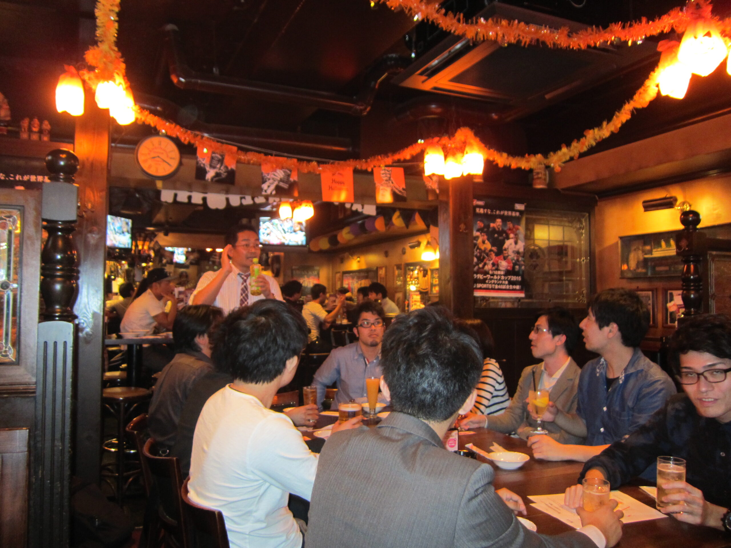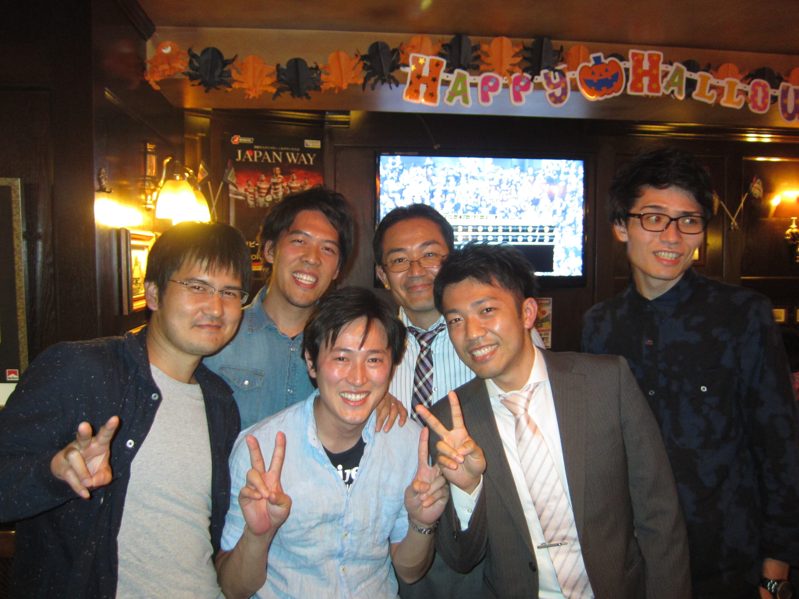 セミナーの後は懇親会が開かれ、骨折治療や整形外科入局勧誘の熱いトークで盛り上がりました。また、二次会は近くのスポーツバーに場所を移し、島村先生にも参加していただきました。スポーツドクターとしてもご活躍中の先生に、スポーツ医療の話題に関しても熱く語っていただきました。ちょうどラグビーW杯イングランド大会が開催中で、この日はサモア対スコットランド戦が生中継されており皆で観戦しました。サモアが勝つと日本が予選通過できるため、大いに盛り上がりました。激戦の末サモアが破れましたが、島村先生と医局員数人が最後までラグビーを満喫しました。島村先生、ご多忙の中夜おそくまでおつき合いいただき、本当にありがとうございました。