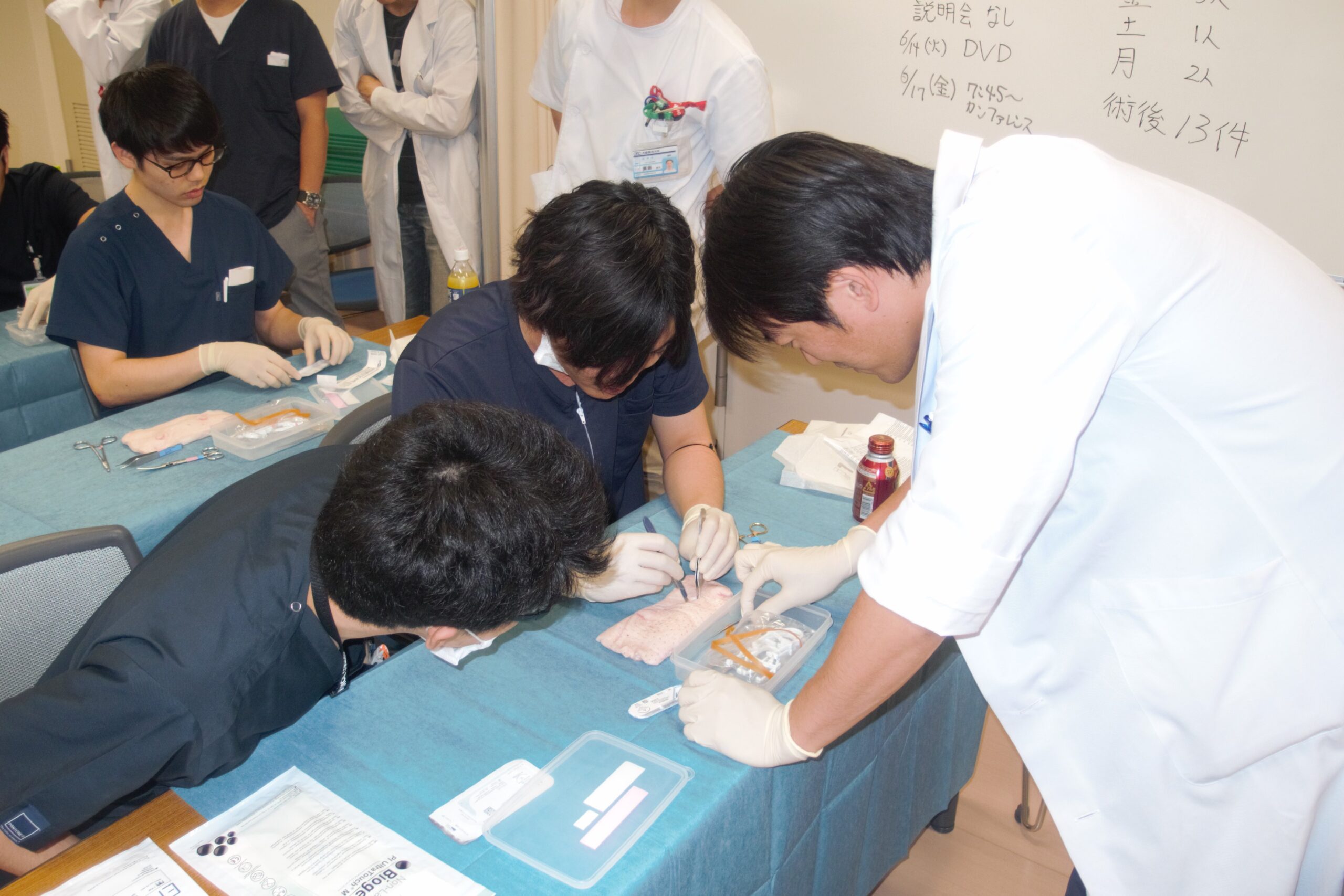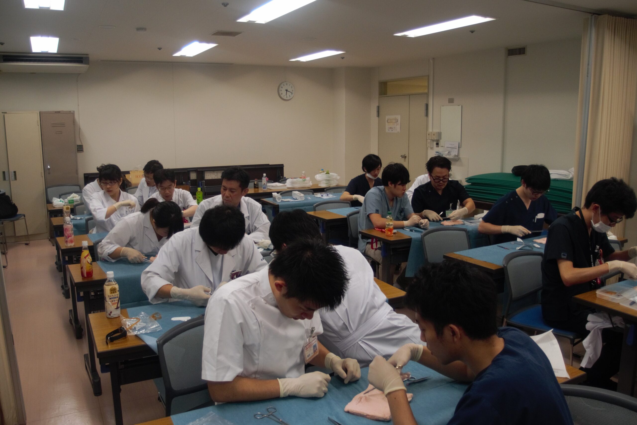 毎年恒例の研修医、学生むけ縫合実習が平成28年6月13日に行われました。
