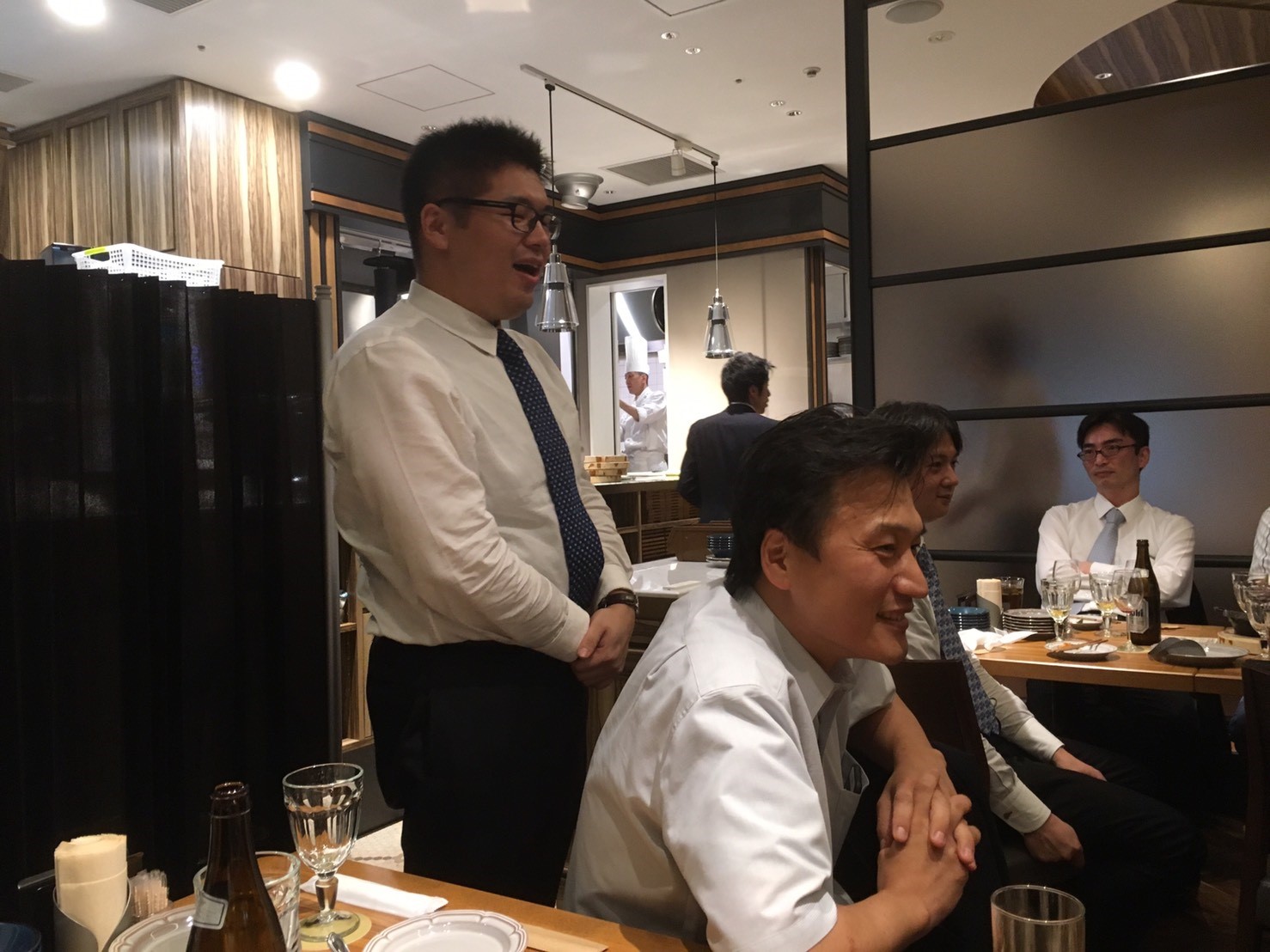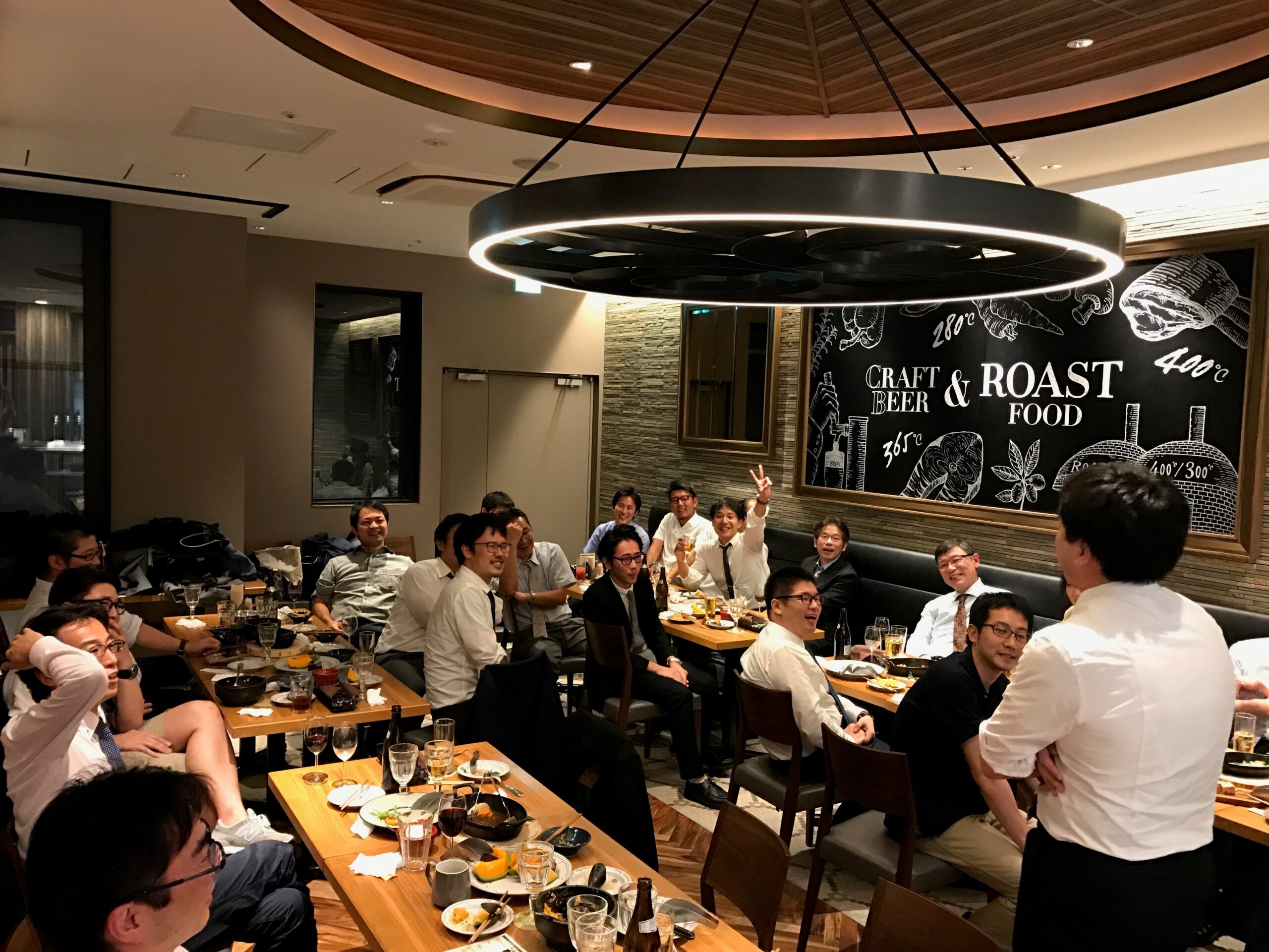 終了後、レジデントの天野先生が準備してくれたレストランに移動して打ち上げをしました。研修医の先生数人にも参加していただき、大塚先生の頑張りや医局のチームワークが、整形外科医を志望する研修医の良い刺激になったと思います。