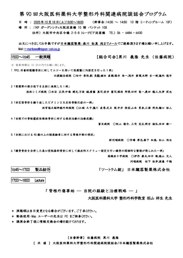 第90回大阪医科薬科大学整形外科関連病院談話会プログラム(PDFデータ)