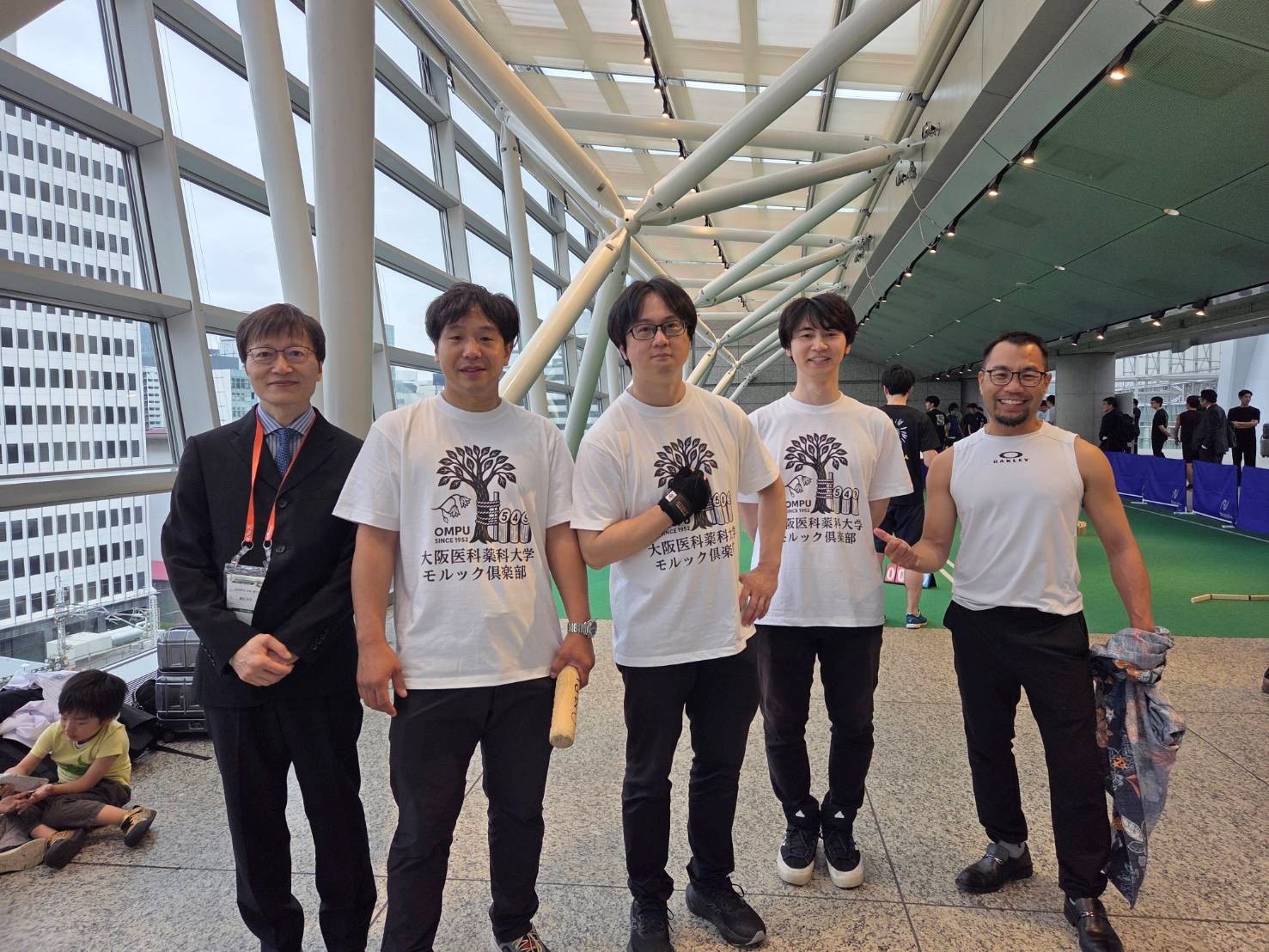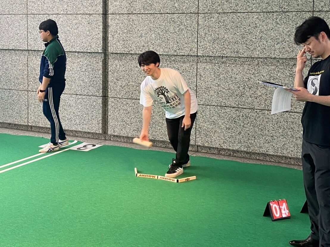 日本整形外科学会学術総会の開催中には毎年スポーツ親善大会が開かれていますが、今年度は例年行われる野球とサッカーの他に、モルックが新しい種目として選ばれました。そこで昨年度急遽大阪医科薬科大学モルック倶楽部(藤野、若間、新保、池田)を発足し、限られた時間の中、高槻安満公園で練習を行っていました。そして2025年5月22日〜23日学会場(東京国際フォーラム)にて開催されたモルック大会に参加してきました(藤野、若間、新保)。
