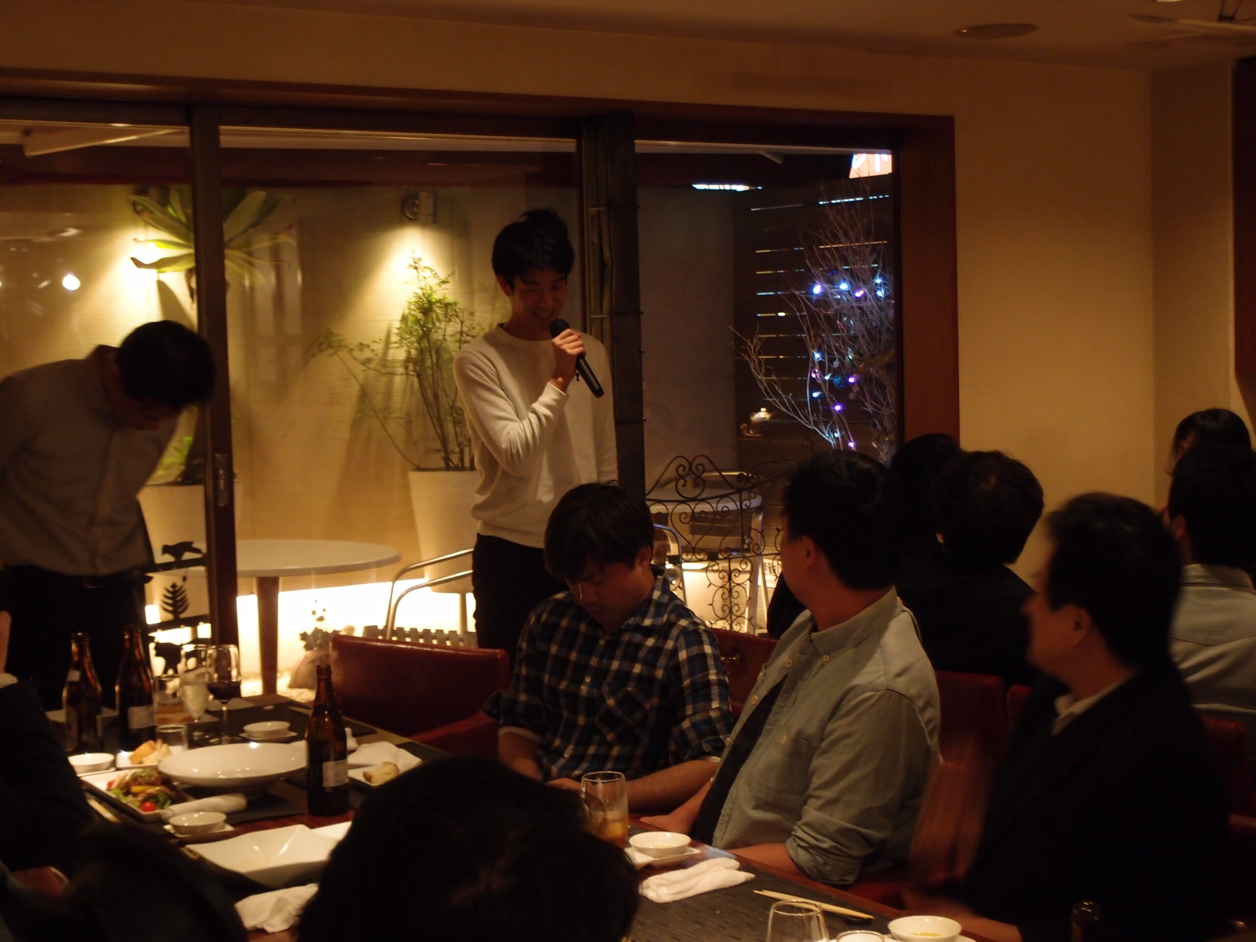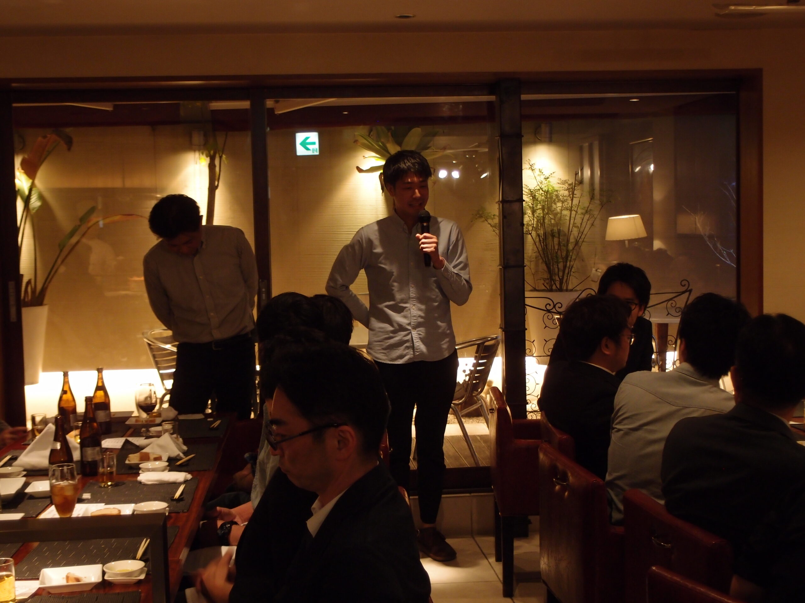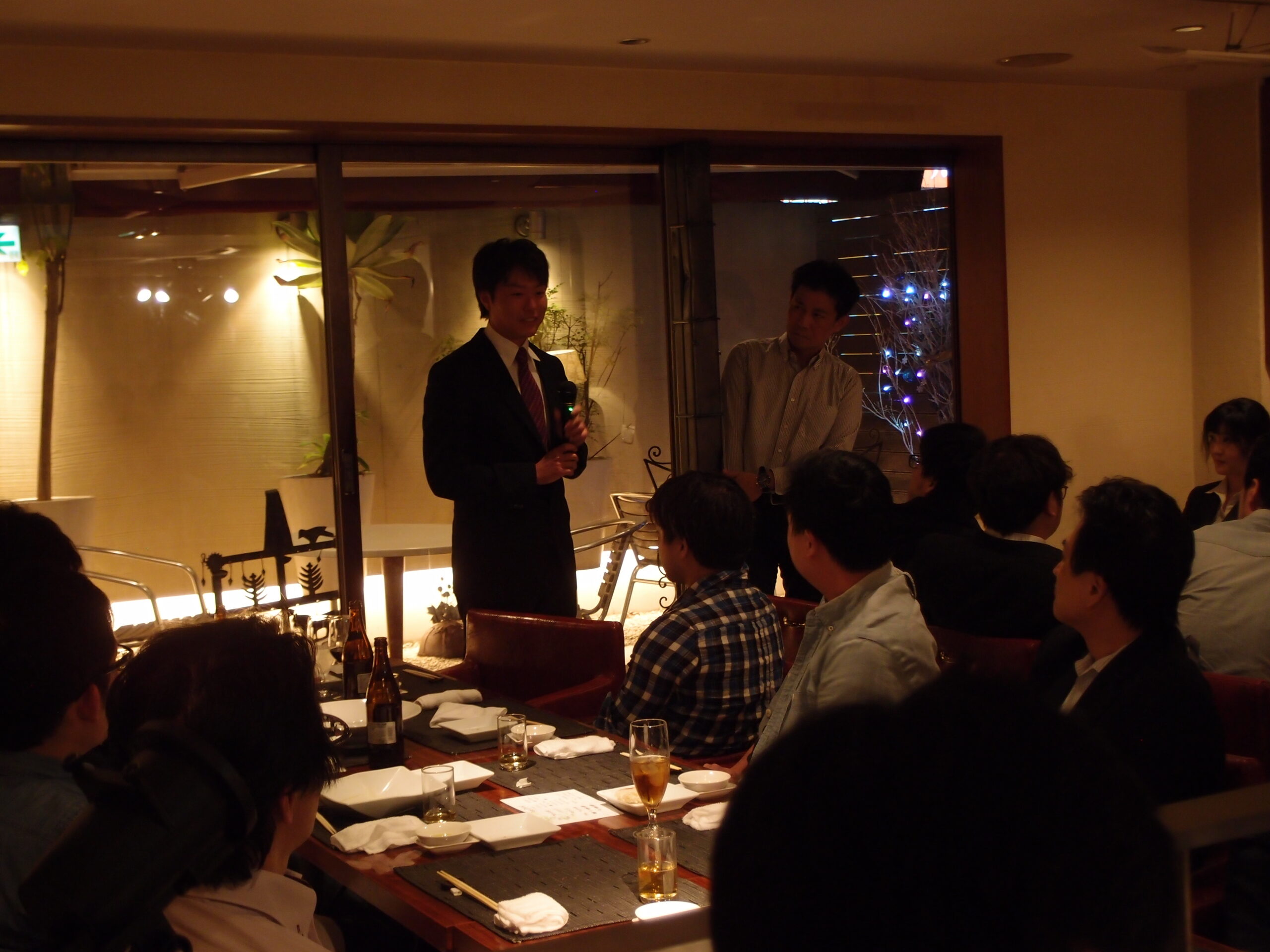 また、帰学した大学院生1年の4名(岡吉倫弘、東迎高聖、池田邦明、大保拓也先生)も加わりました。最近の大学院生は英語論文を4年のうちに書き上げて学位取得を目指すということが当たり前となり、個々のスピーチからも高いモチベーションを感じることができました。今のフレッシュな熱い気持ちを持続させ、世界に羽ばたいて欲しいです。その後は、先輩先生方の心温まるスピーチや、筋トレ自慢、今年から2名の女性医師を迎えるにあたり、大学院4年生の木澤先生が風紀委員長に就任するというサプライズも飛び出したりと、定番の美味しい食事とお酒が堪能できました。