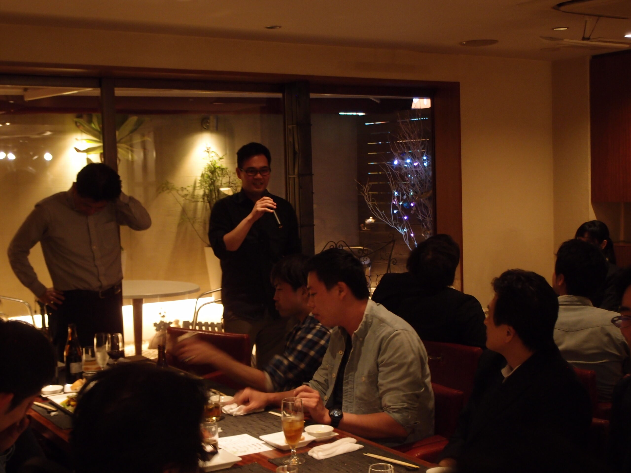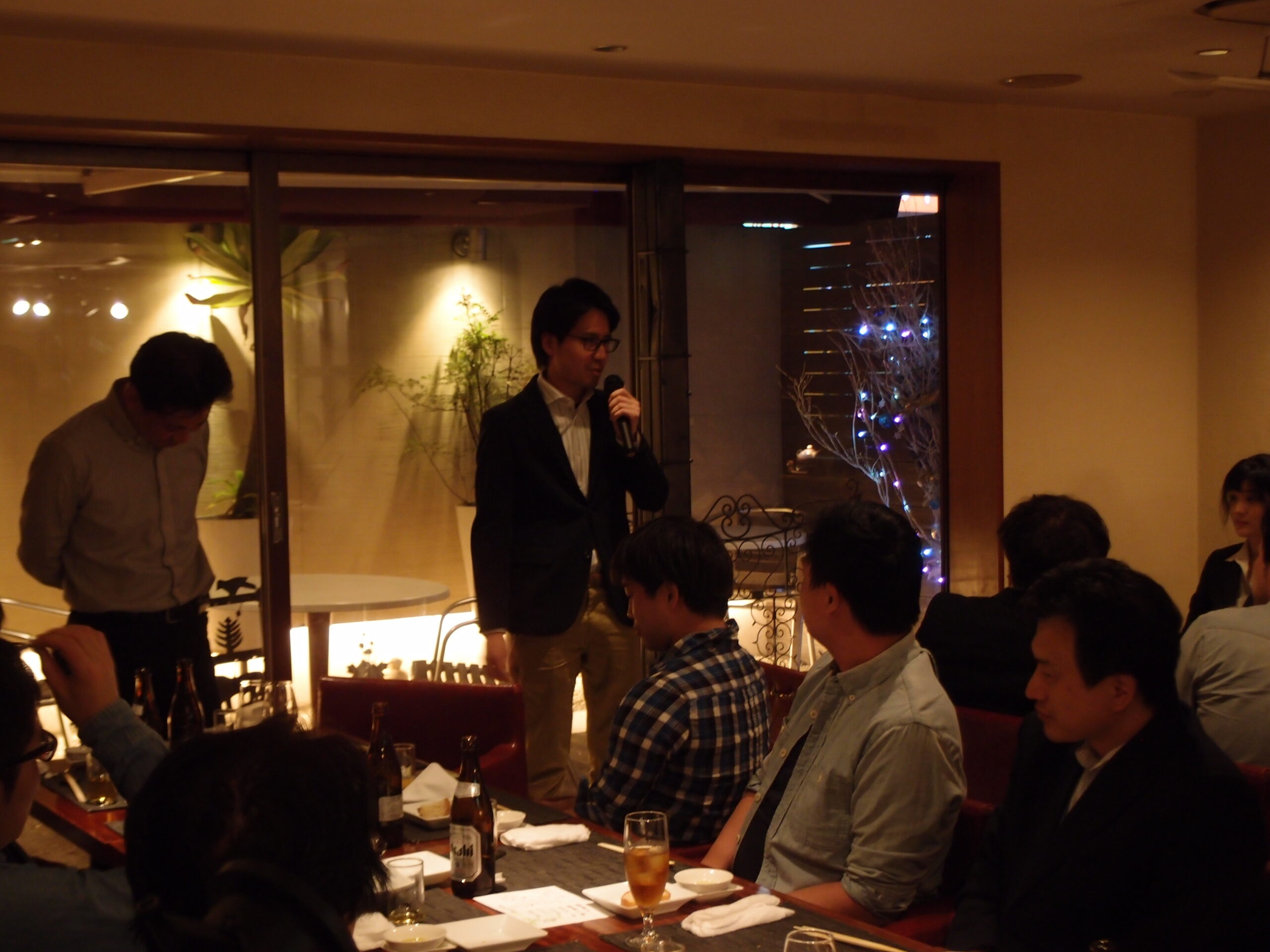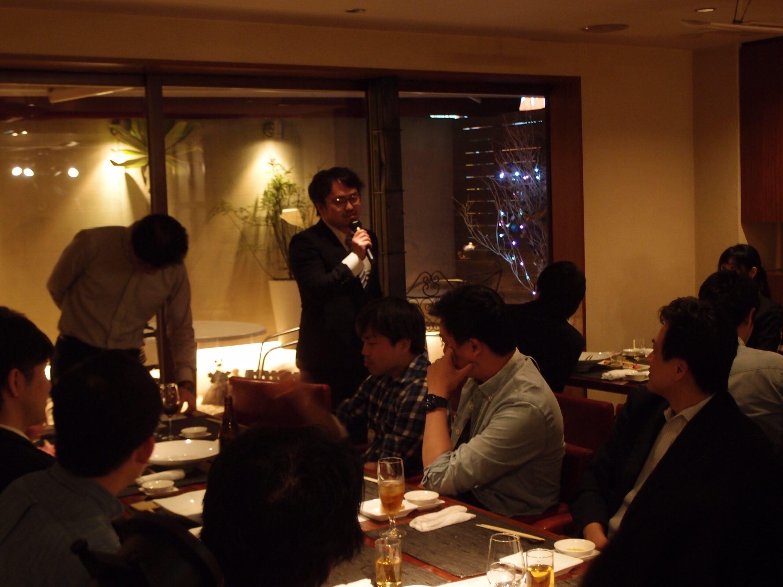 また、帰学した大学院生1年の4名(岡吉倫弘、東迎高聖、池田邦明、大保拓也先生)も加わりました。最近の大学院生は英語論文を4年のうちに書き上げて学位取得を目指すということが当たり前となり、個々のスピーチからも高いモチベーションを感じることができました。今のフレッシュな熱い気持ちを持続させ、世界に羽ばたいて欲しいです。その後は、先輩先生方の心温まるスピーチや、筋トレ自慢、今年から2名の女性医師を迎えるにあたり、大学院4年生の木澤先生が風紀委員長に就任するというサプライズも飛び出したりと、定番の美味しい食事とお酒が堪能できました。