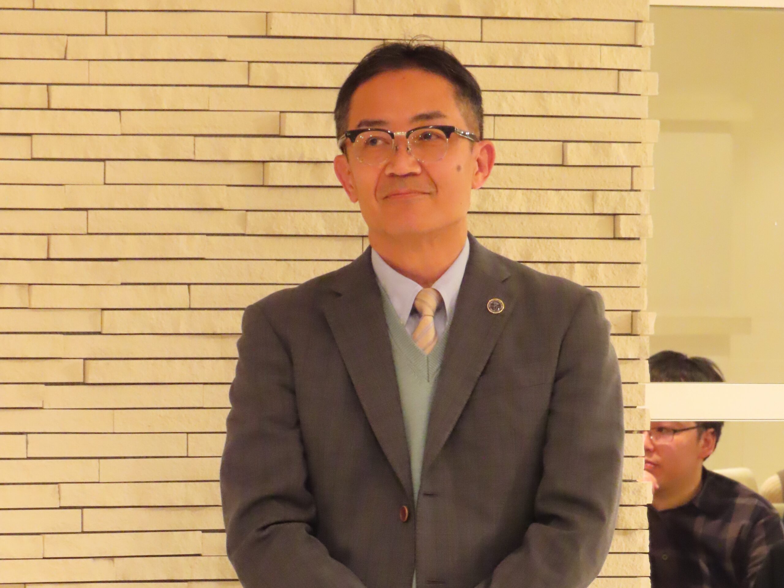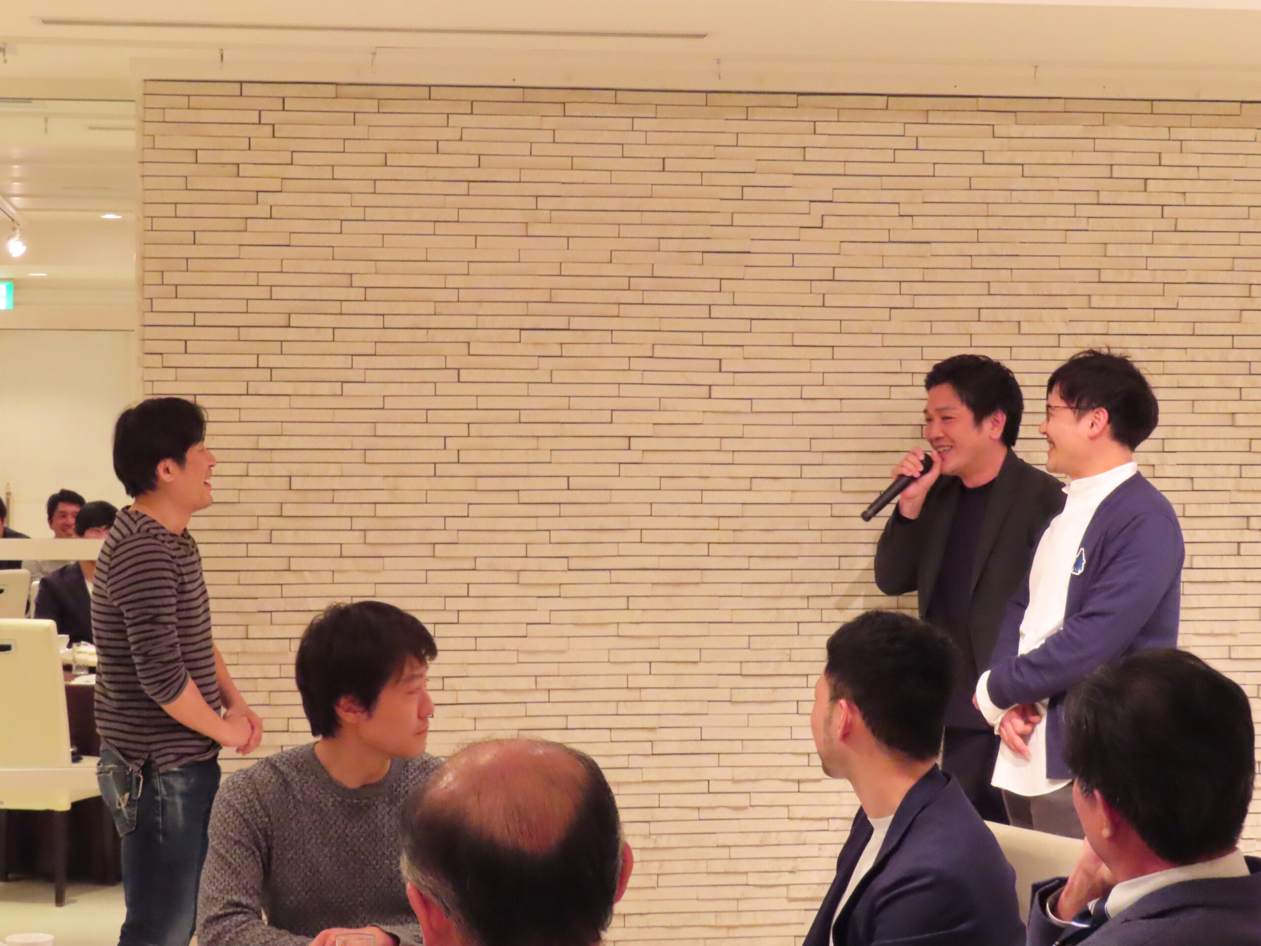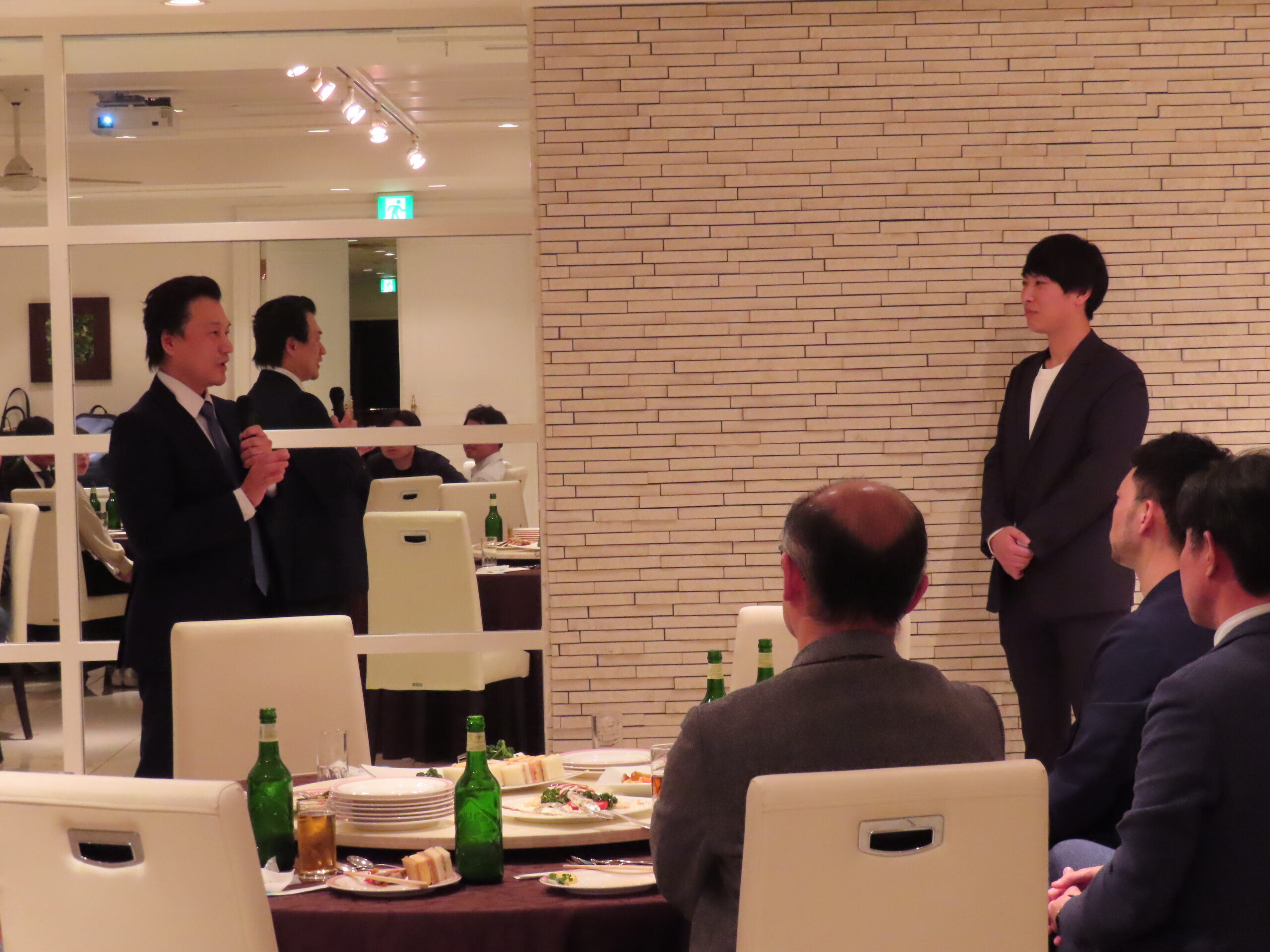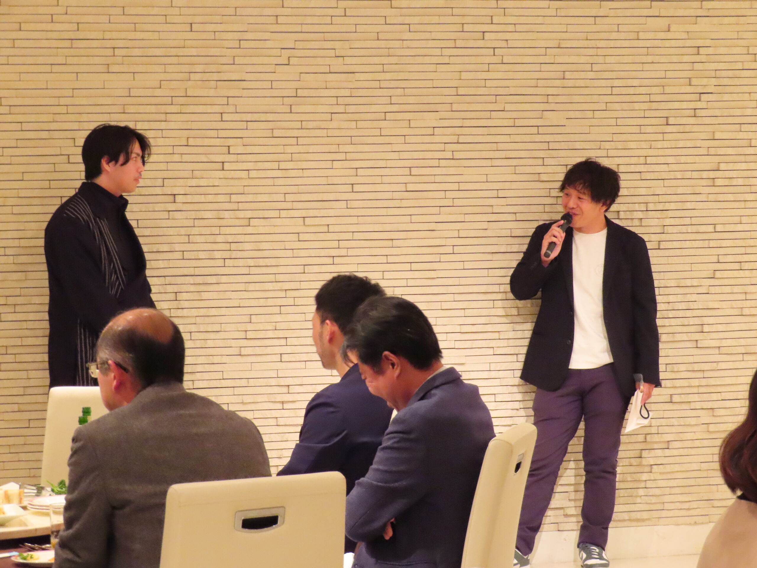 最初に大槻周平教授よりご挨拶をいただき、続いて馬場一郎准教授に乾杯のご発声をいただいて、会が始まりました。