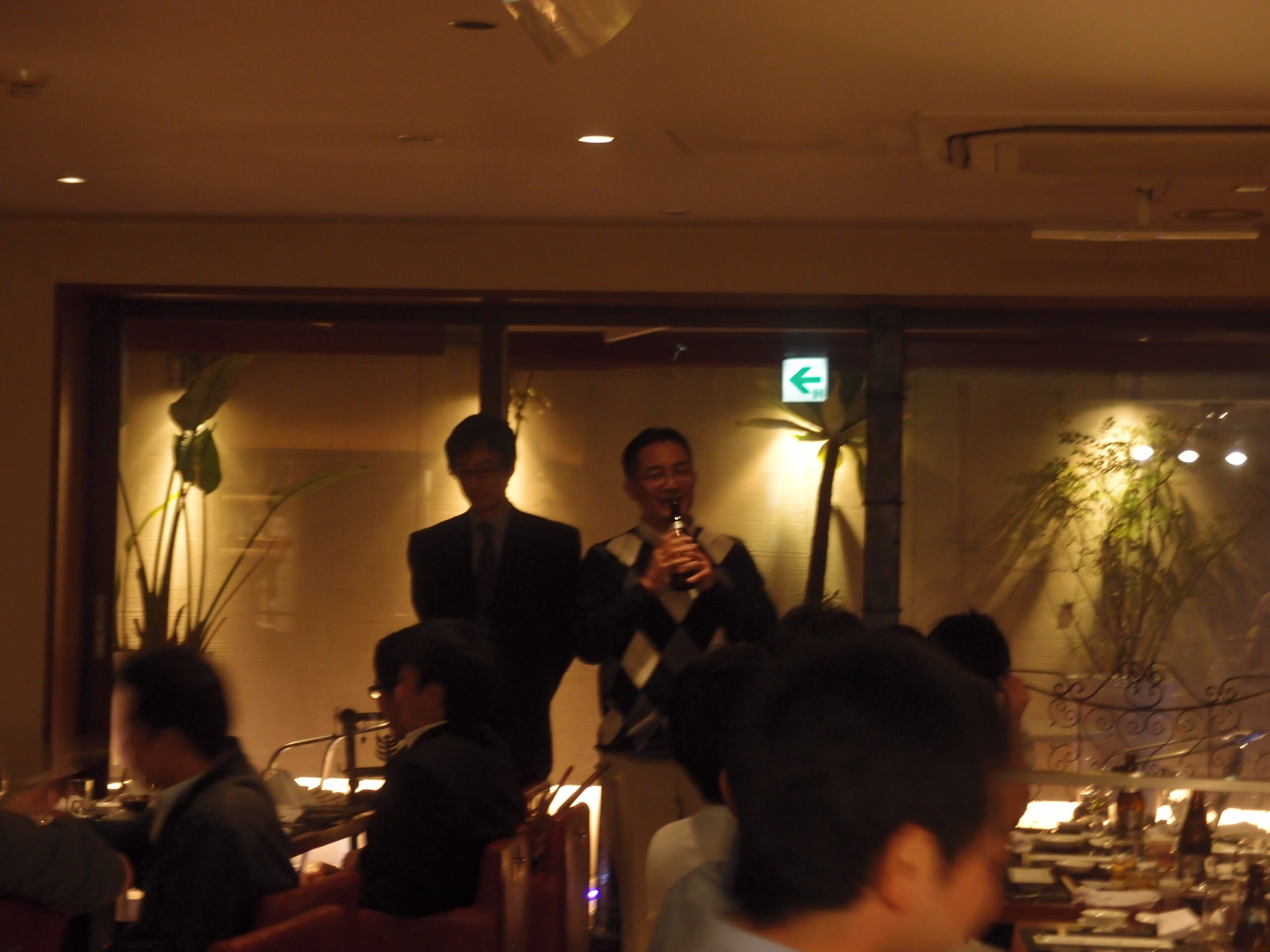 研修医の勧誘を率先する嶋洋明先生のご尽力の賜物です。助教(准)として中矢良治先生がスタッフになり、帰学した大学院生1年の4名(宇佐美嘉正、奥野修大、木野圭一朗、若間仁司先生ら)も加わりました。各先生の力強い抱負と何処となく笑いを誘うユーモアあふれるスピーチを聞き、定番の美味しい食事とお酒が堪能できました。